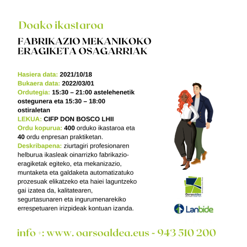 420 orduko ikastaroa eta 80 orduko praktikak enpresan